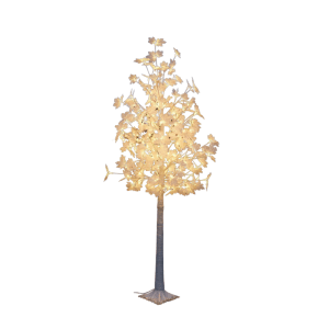 Arțar Decorativ Cu LED-uri Calde, Frunze Albe Din Plastic Și Suport