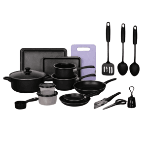 Set Complet Cu 22 De Piese Pentru Bucătărie Cu Oale, Tigăi, Wok, Tăvi, Etc.