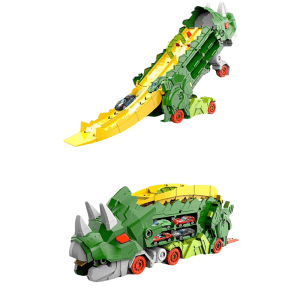 Jucărie Interactivă Dinozaur cu Camion, Rampă de Lansare și 2 Mașinuțe
