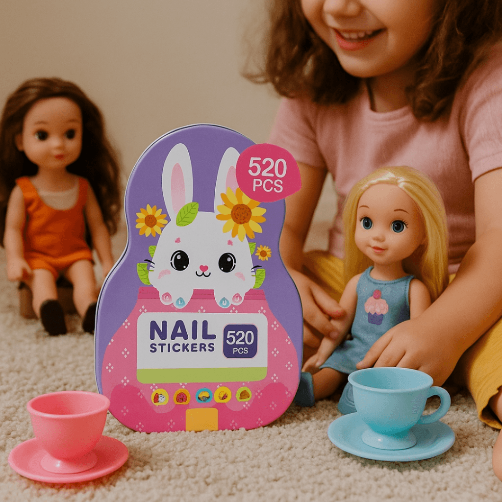 Set de 520 Autocolante Colorate de Unghii pentru Copii, Durabile și Ușor de Aplicat + Cadou surpriză 🎁