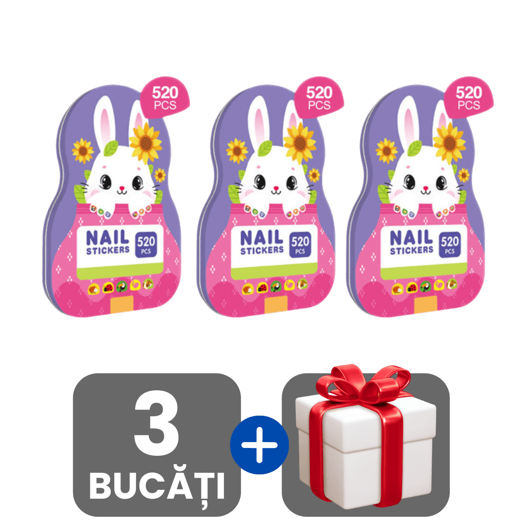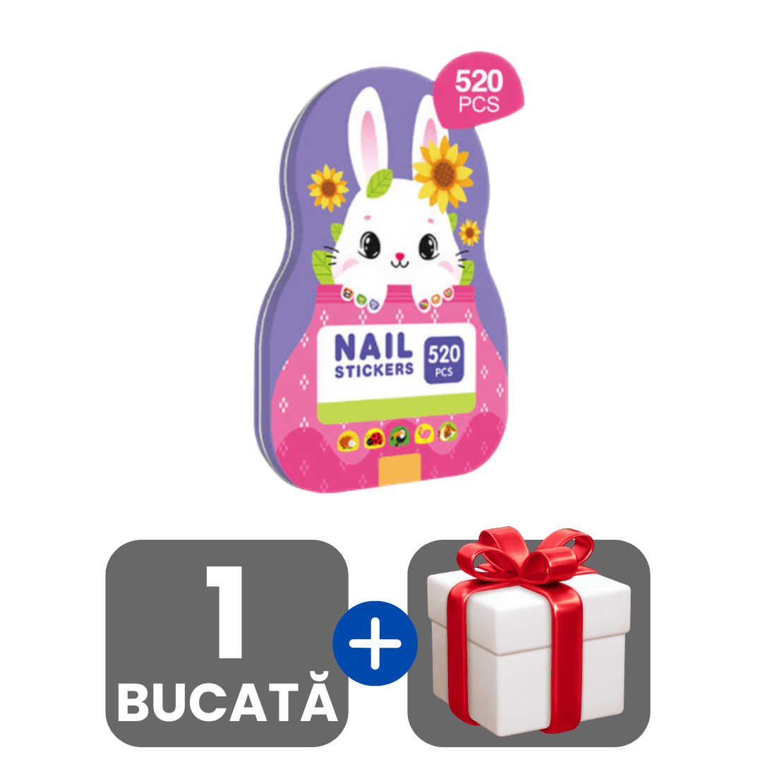 Set de 520 Autocolante Colorate de Unghii pentru Copii, Durabile și Ușor de Aplicat + Cadou surpriză 🎁