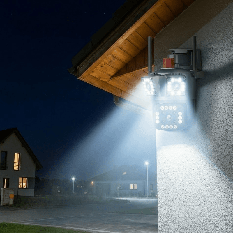 Protejează-ți locuința cu o cameră de supraveghere 3-în-1. Cu trei ecrane de monitorizare în timp real și rezoluție Full HD, nu vei rata niciun detaliu important. Este ideală pentru exterior, iar pe timp de noapte vezi clar cu infraroșu, chiar și în întuneric. Primești și alerte instantanee direct pe telefonul tău.