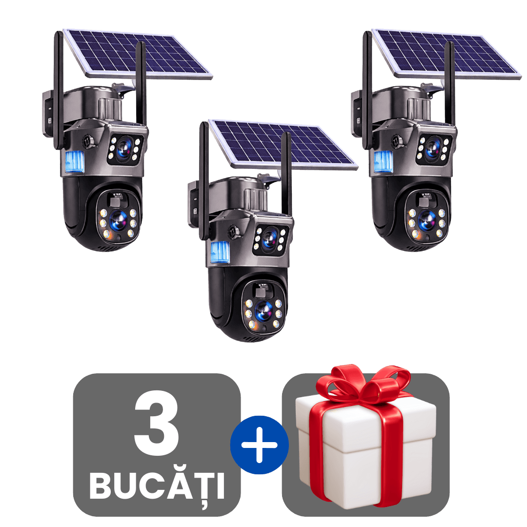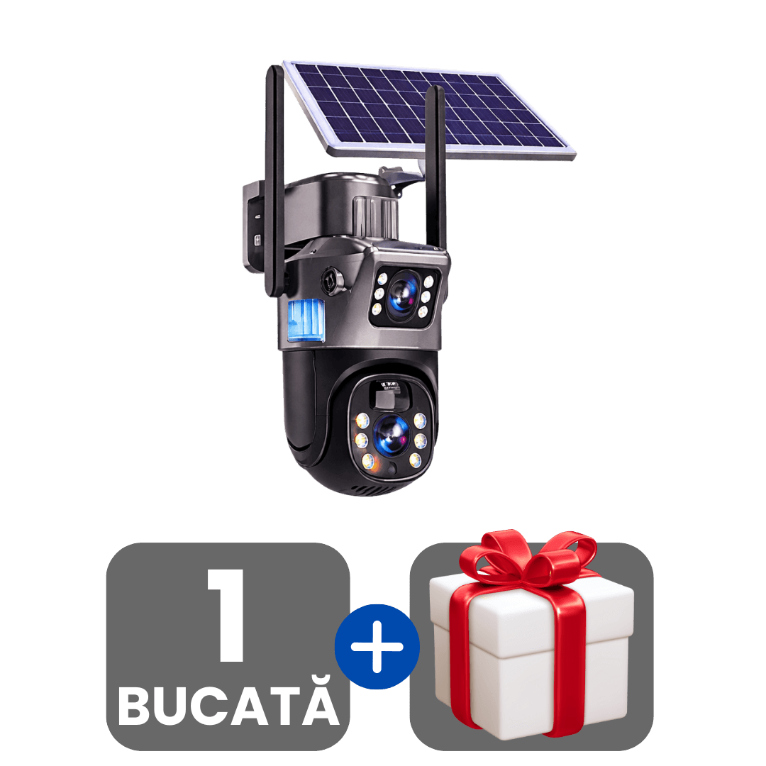Cameră De Supraveghere 4K Cu Panou Solar, Slot Cartela SIM 4G, Senzor De Mișcare Și Vedere Nocturnă + Cadou surpriză 🎁
