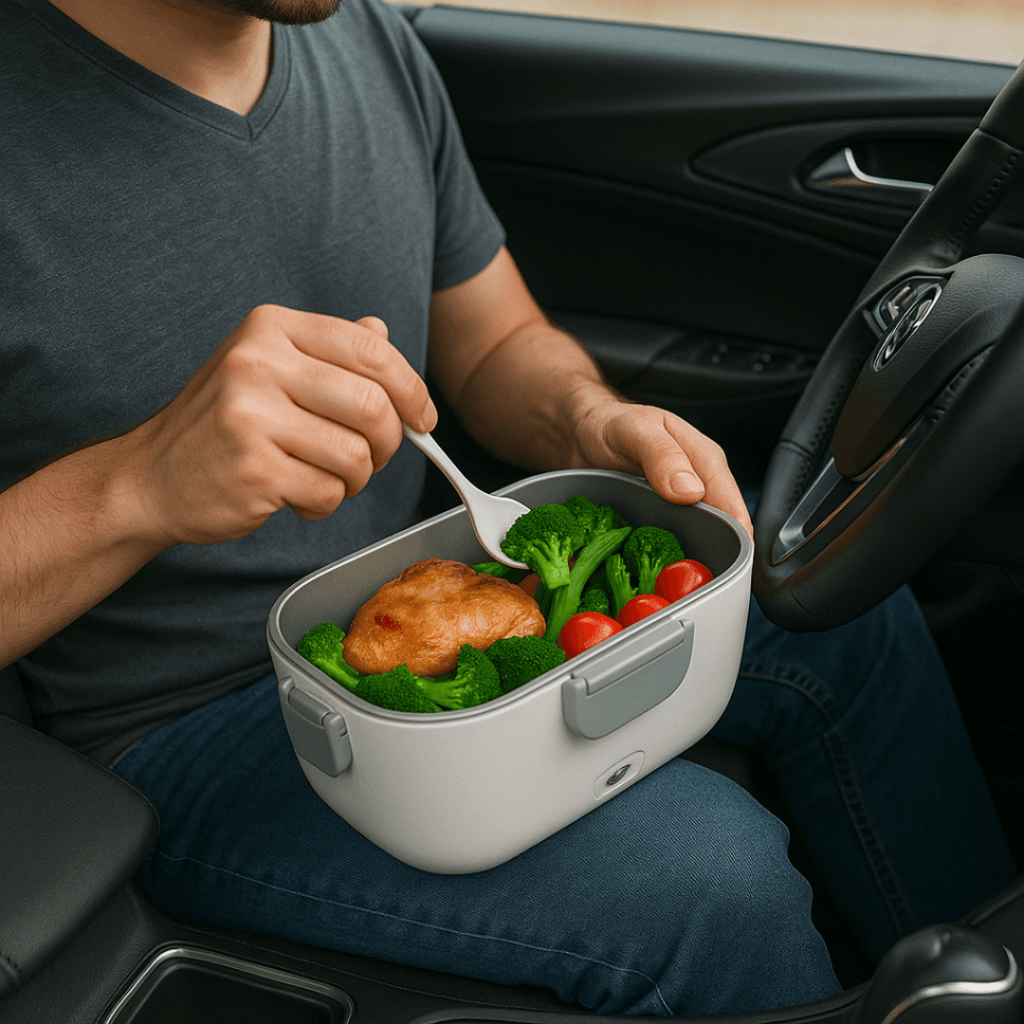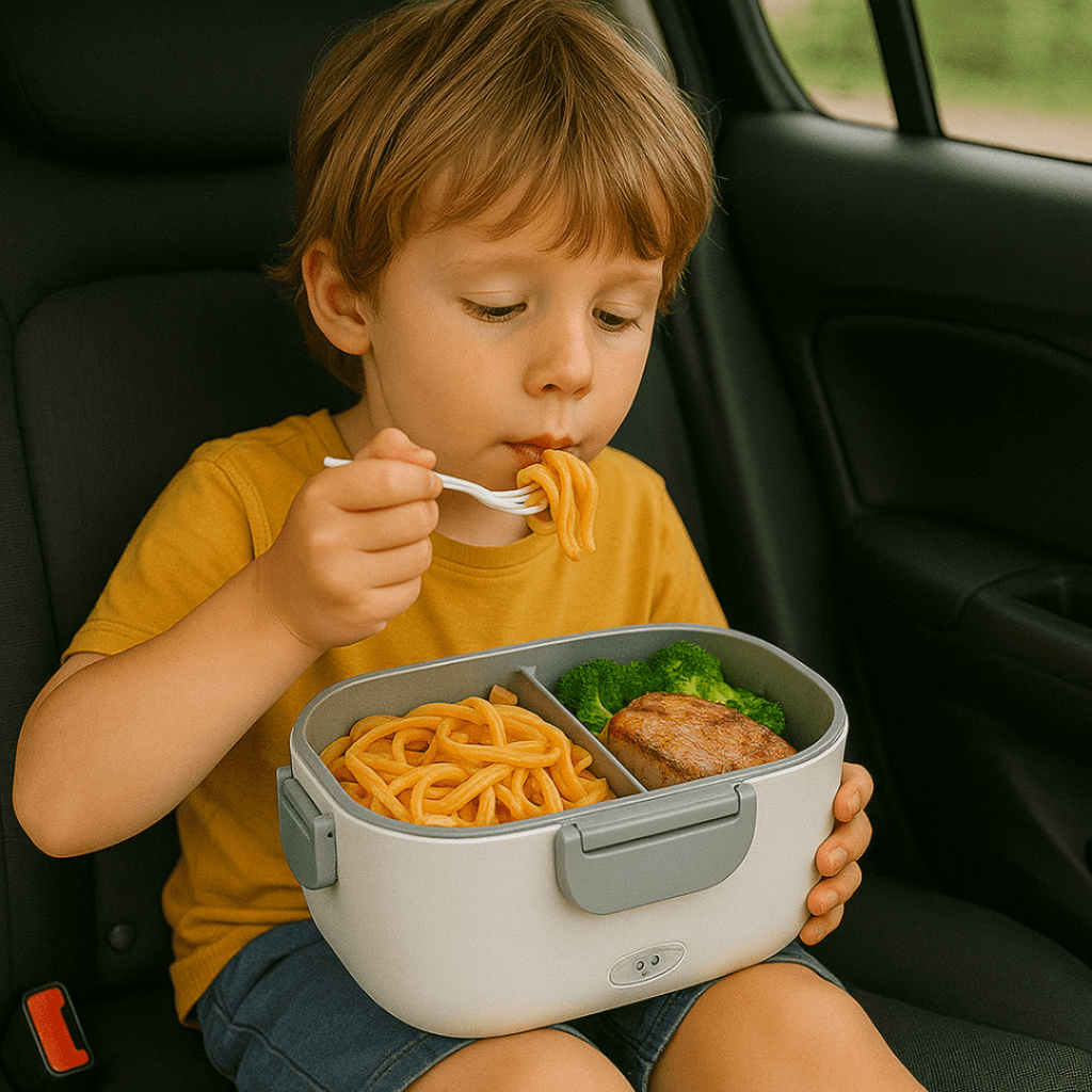 „Îi încălzesc mâncarea copilului direct în mașină, mai ales după grădiniță. Mănâncă liniștit, cald și proaspăt, fără grabă sau stres.”