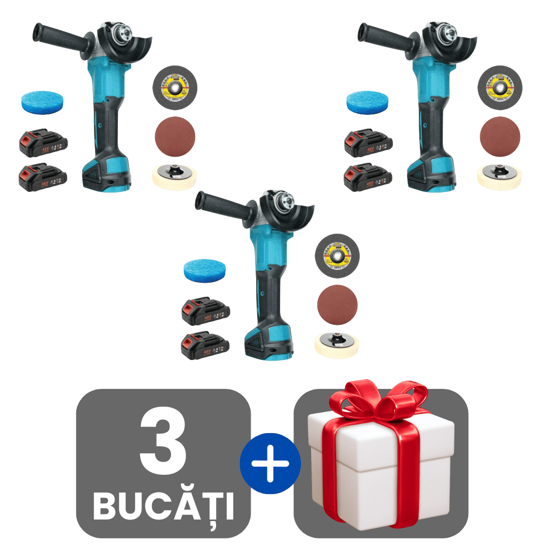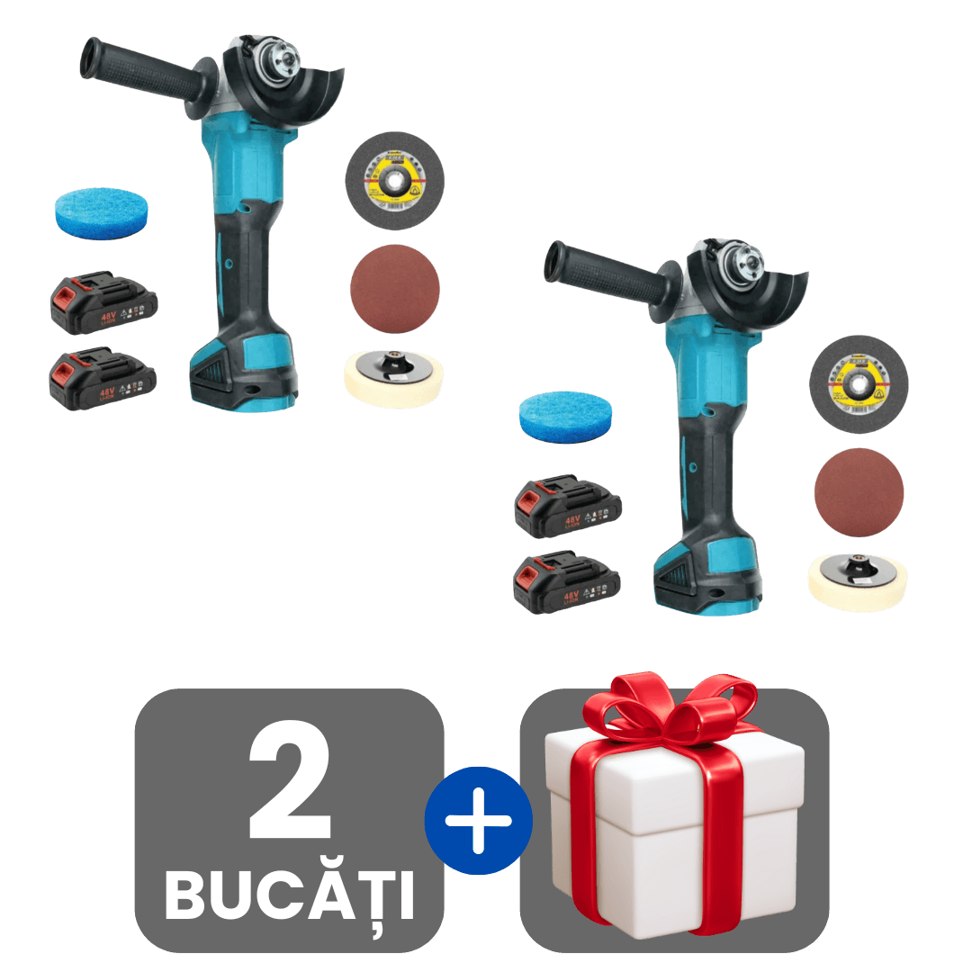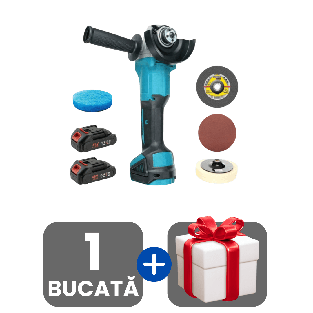 Flex Profesional Cu Discuri De Tăiere și Șlefuire Incluse, 2 Acumulatori 48V Și Cutie De Transport + Cadou surpriză