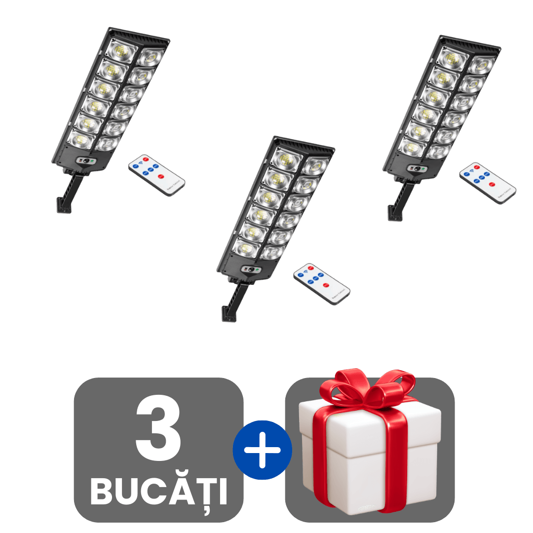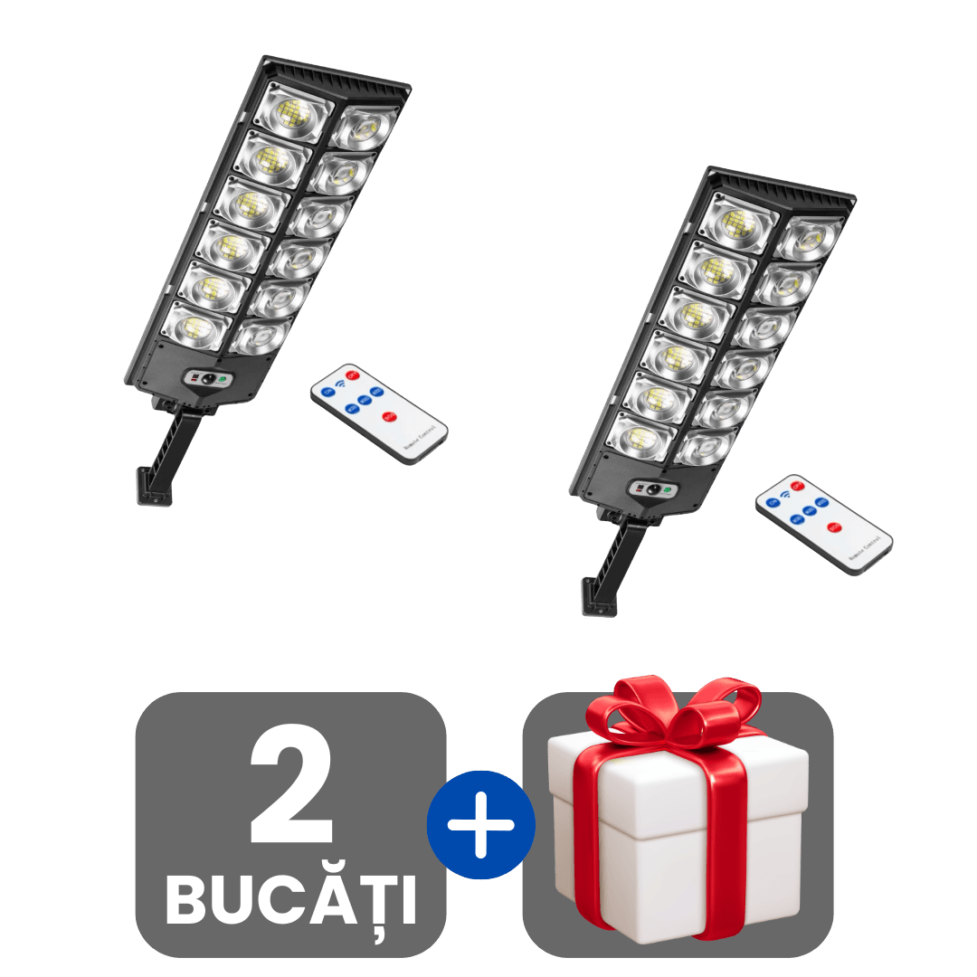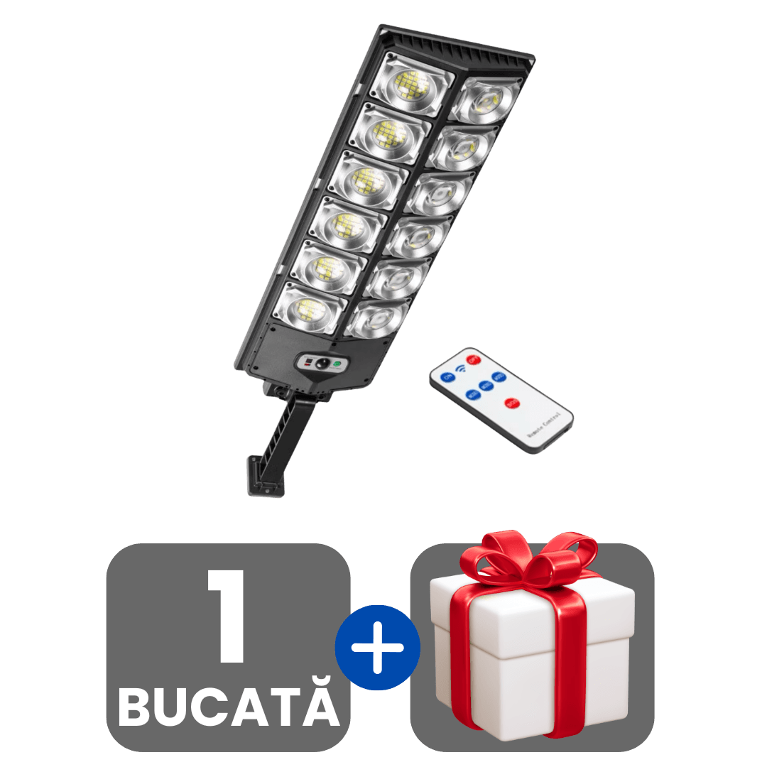 Lampă Solară Stradală cu 360 LED-uri, Senzor de Mișcare și Telecomandă + Cadou surpriză 🎁