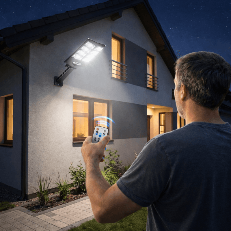 Alege dintre cele trei moduri de iluminare direct din telecomandă. Se aprinde automat la mișcare și rezistă perfect la ploaie, frig sau căldură extremă.