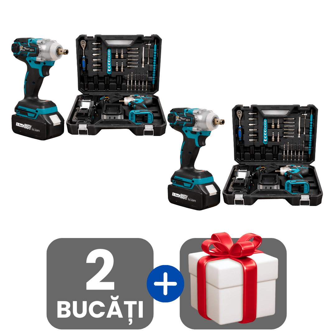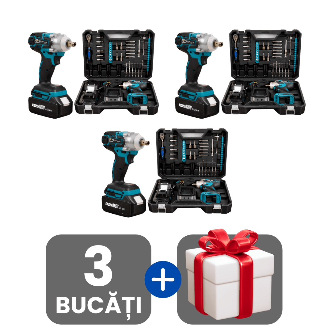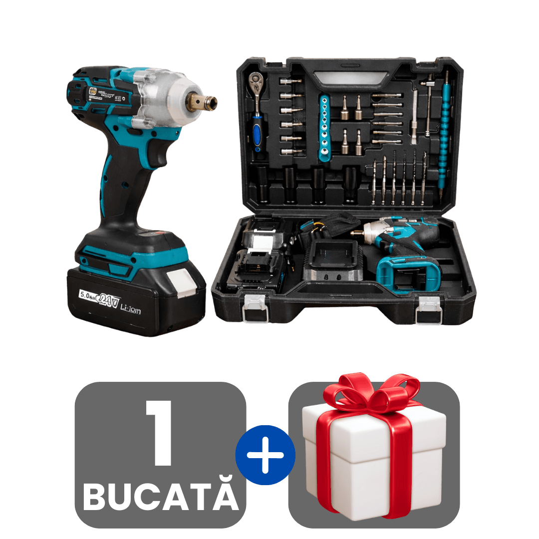 Mașină Profesională De Înșurubat Cu Impact cu 2 Acumulatori 48V, 43 Accesorii Și Cutie De Transport + Cadou surpriză