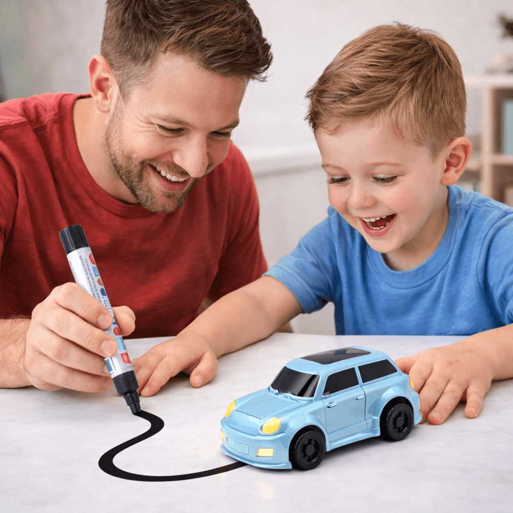 - Set complet: Pachetul include tot ce ai nevoie: mașinuță, marker special, baterii și traseu de test.