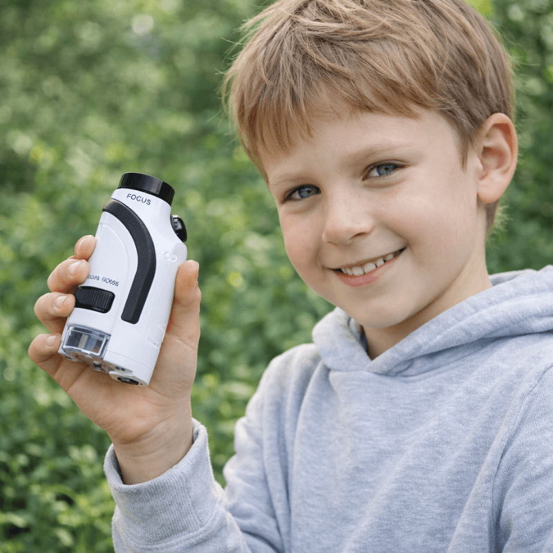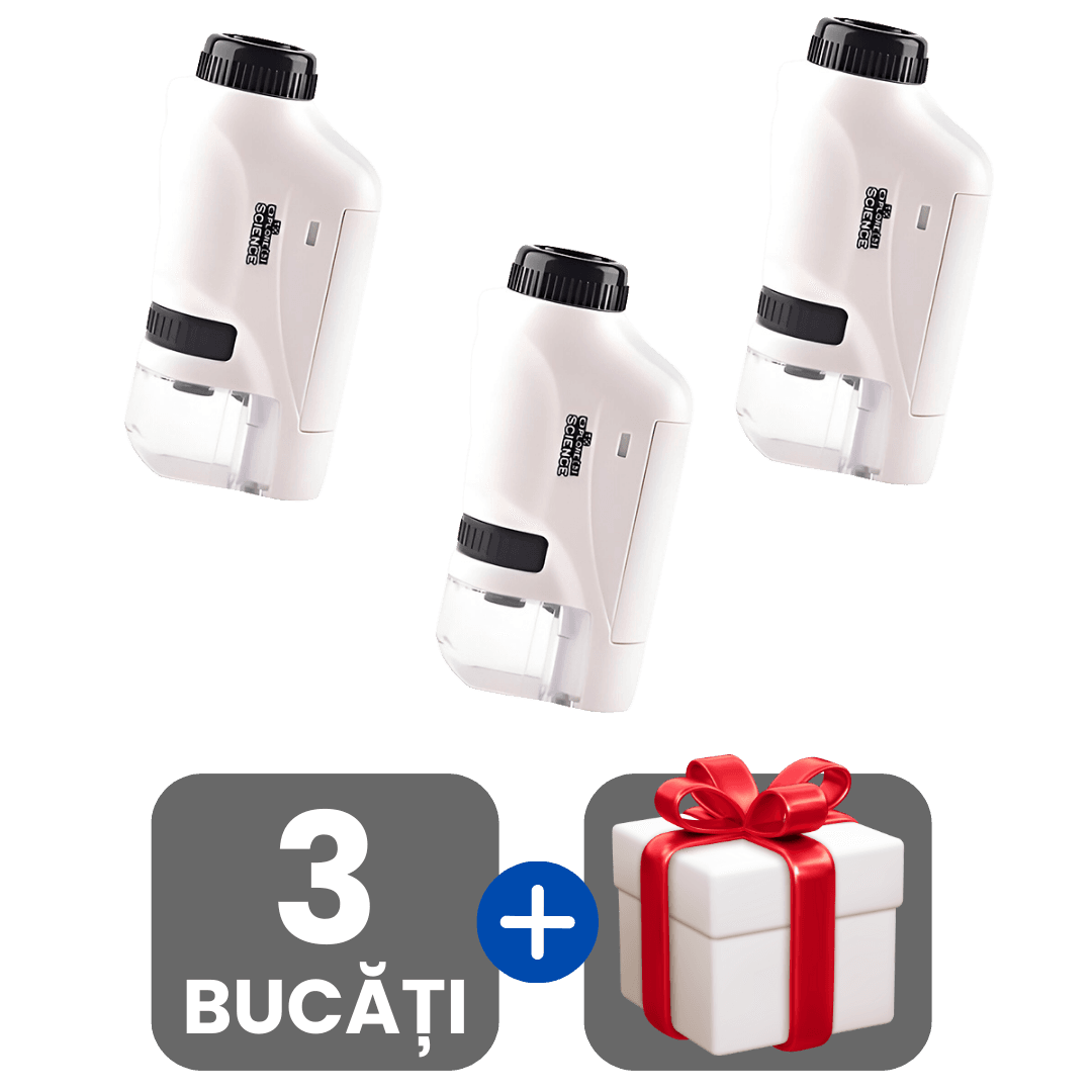 În timp ce pe piață există multe jucării educative, microscopul nostru este 100% original și construit din materiale de înaltă calitate, sigure pentru copii. Lentilele noastre oferă o claritate superioară, iar designul este proiectat special pentru a rezista aventurilor în aer liber, oferind o experiență autentică de cercetare.