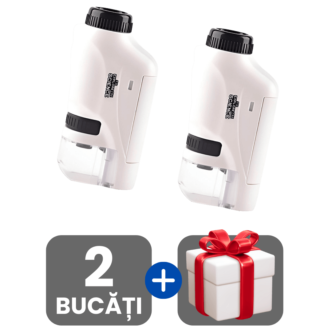 Transformă fiecare plimbare într-o aventură științifică fascinantă! Acest microscop portabil este instrumentul ideal pentru micii exploratori, permițându-le să descopere detaliile ascunse ale frunzelor, insectelor și obiectelor de zi cu zi. Cu o claritate remarcabilă și un design ergonomic, învățarea devine o experiență captivantă și plină de surprize.