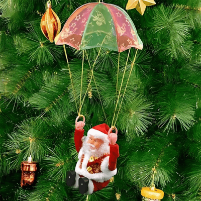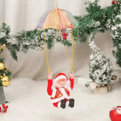 Ornament cu Moș Crăciun cu Parașută Care Se Învârte Și Cântă + Cadou surpriză 🎁