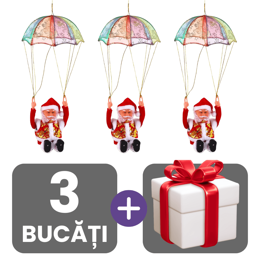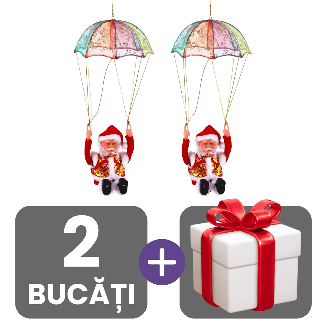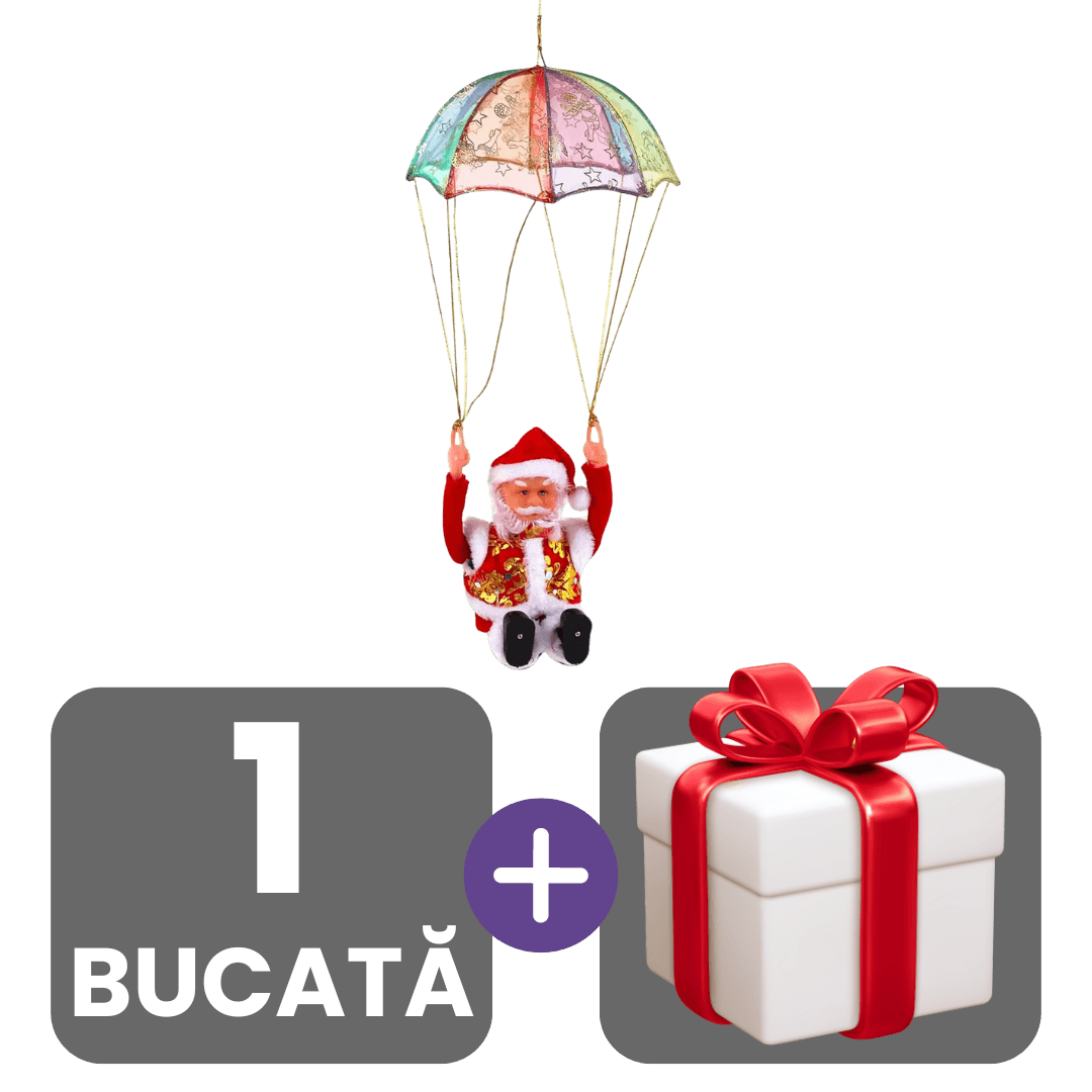 Ornament cu Moș Crăciun cu Parașută Care Se Învârte Și Cântă + Cadou surpriză 🎁