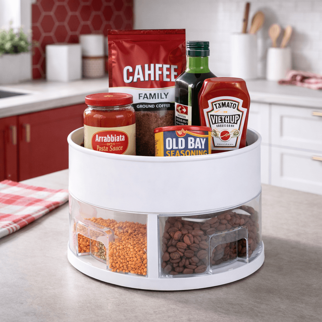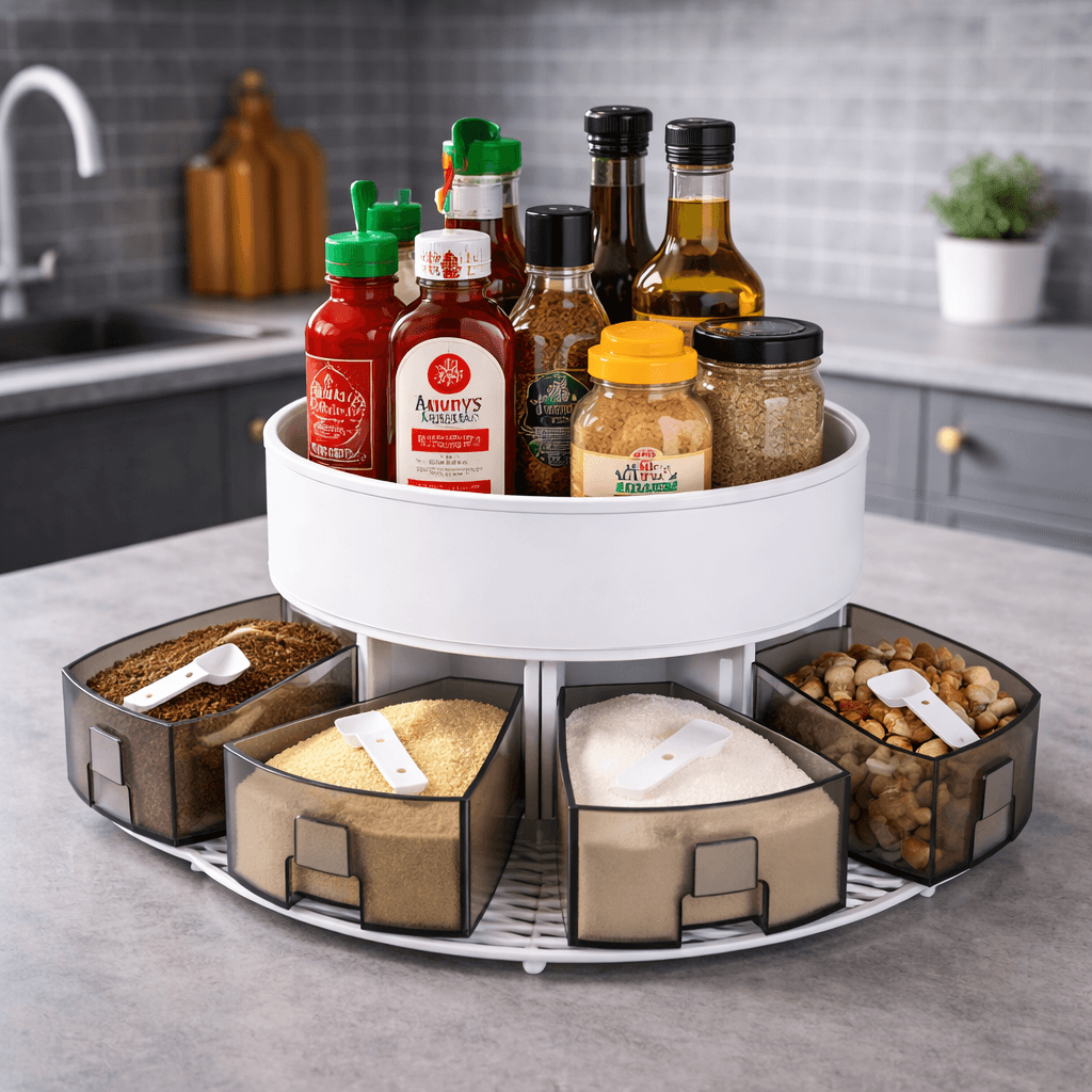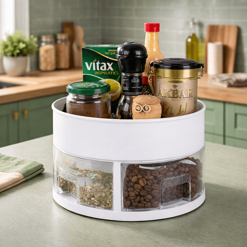 Organizator Rotativ De Bucătărie 360° Cu 4 Sertare Si Lingurițe Incluse + Cadou surpriză 🎁