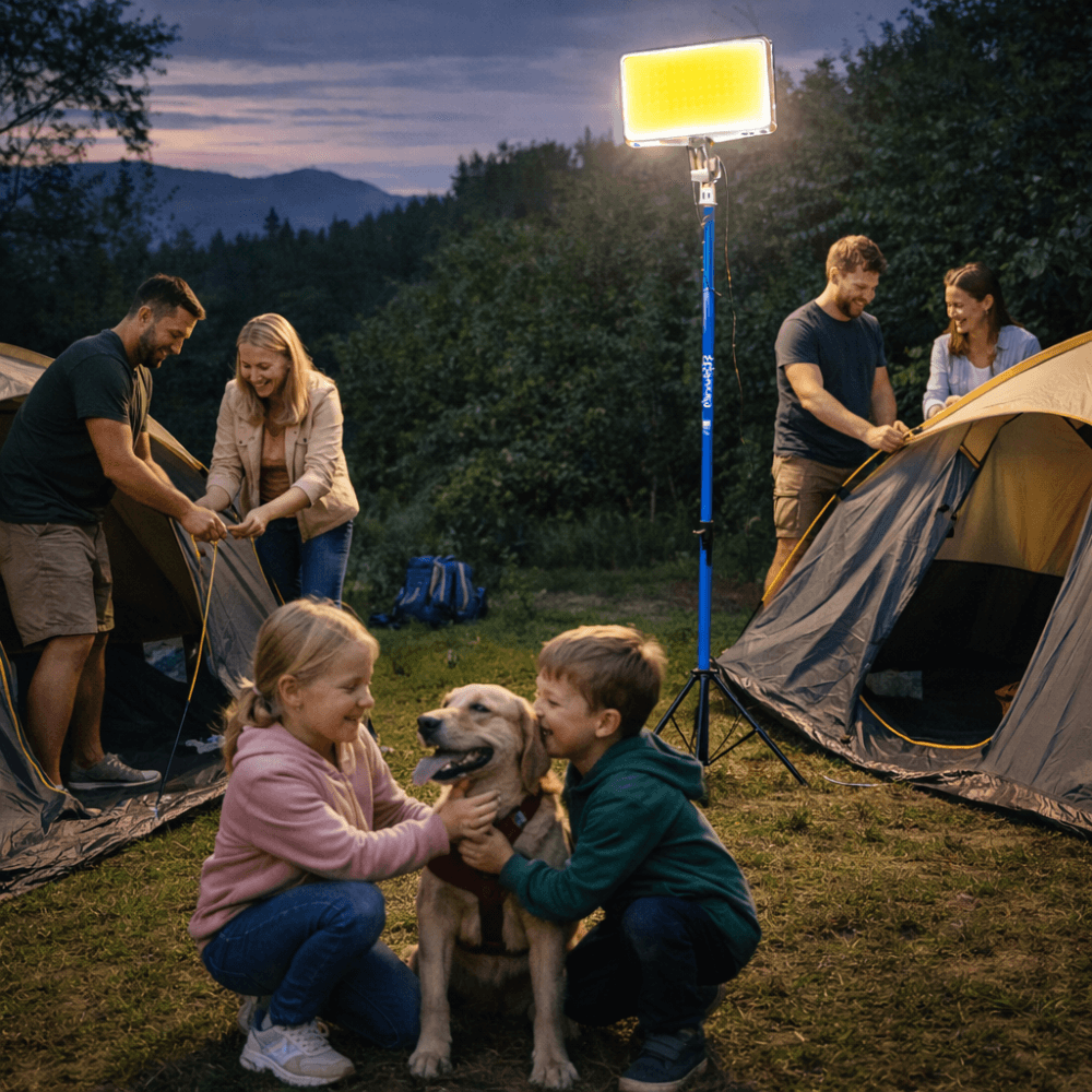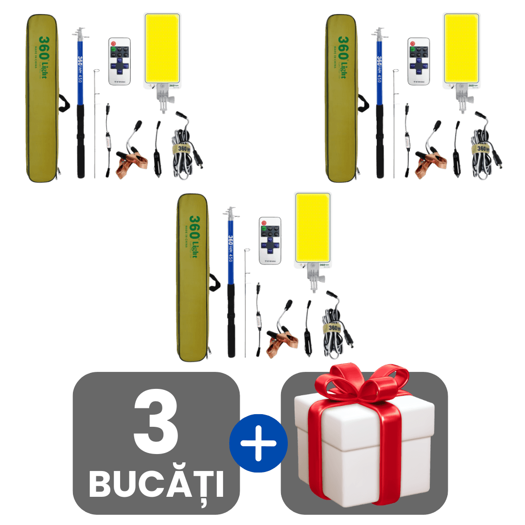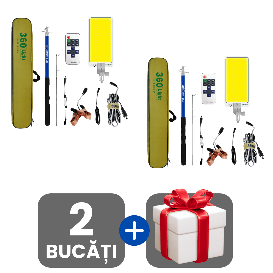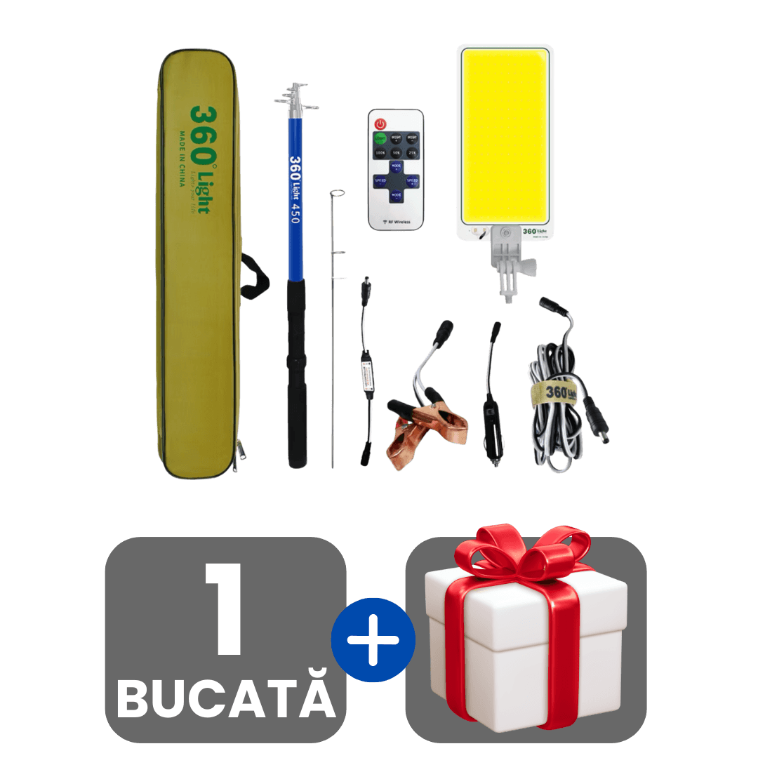 Proiector LED pentru Camping cu Braț Telescopic 4,5m, Telecomandă și Geantă de Transport + Cadou surpriză