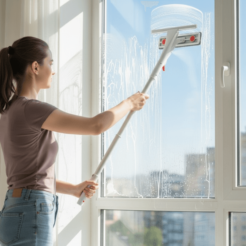 Ștergător de Geamuri 2-în-1 Cu Pulverizator Și Tijă Telescopică Până La 165 cm + Cadou surpriză 🎁