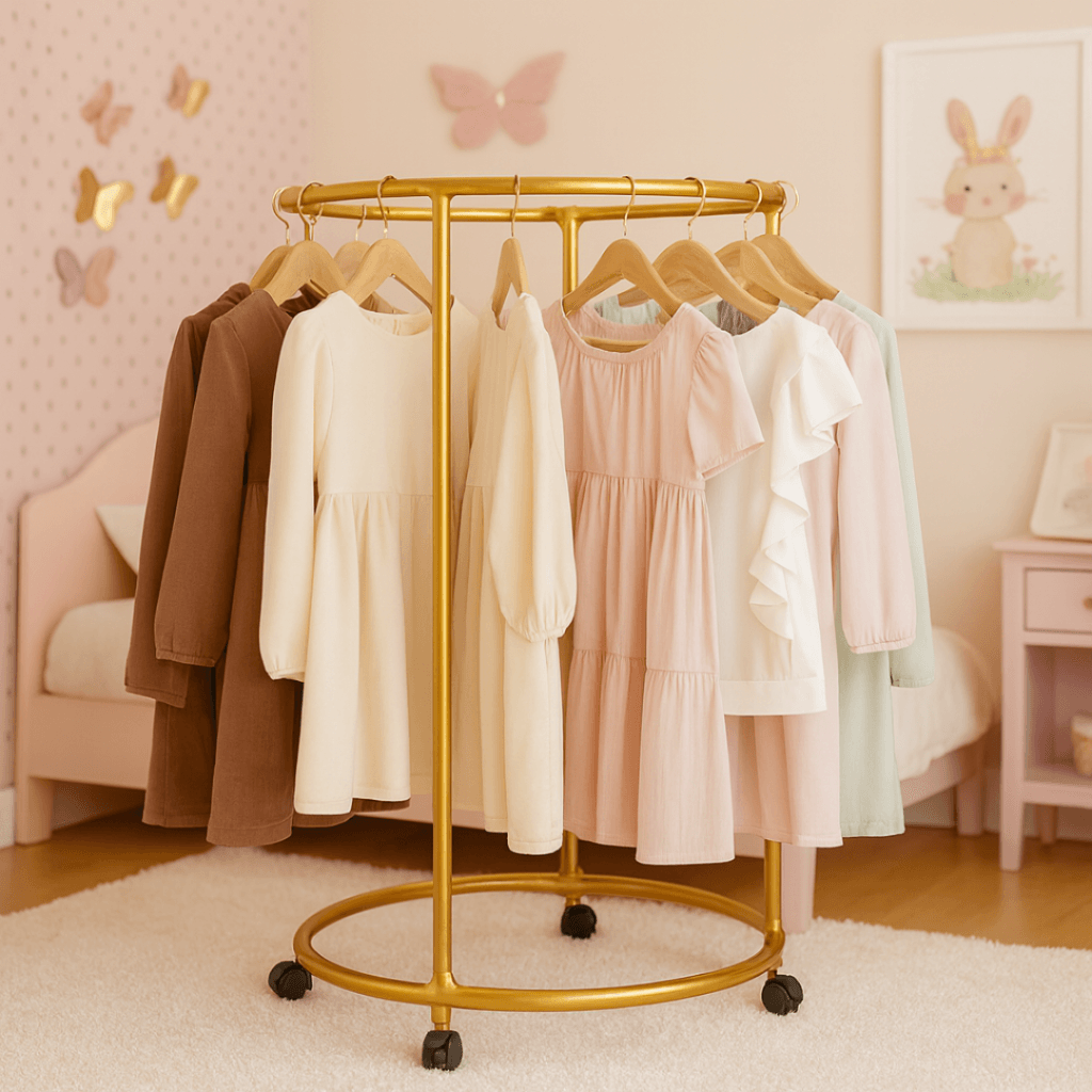„L-am montat rapid și ține perfect hainele fetiței mele. Roțile se mișcă ușor și pot muta suportul prin casă fără niciun efort suplimentar.”