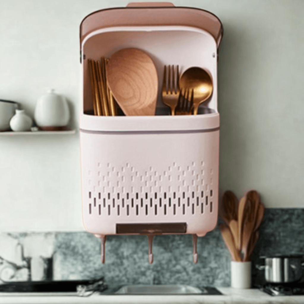 Suport de Perete pentru Ustensile de Bucătărie cu Cârlige și Sistem de Scurgere al Apei + Cadou surpriză 🎁