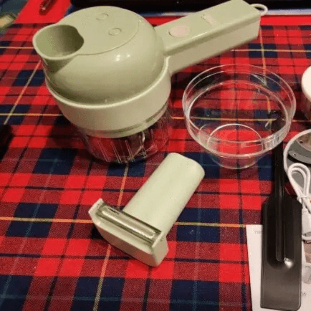 Tocător de Mână Electric 4-în-1 cu Lame din Oțel pentru Legume și Fructe + Cadou surpriză 🎁