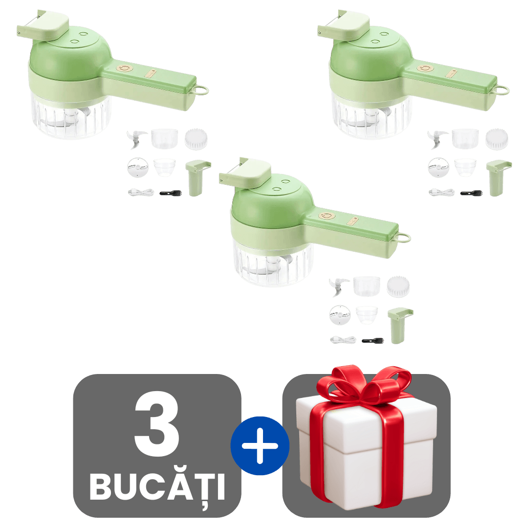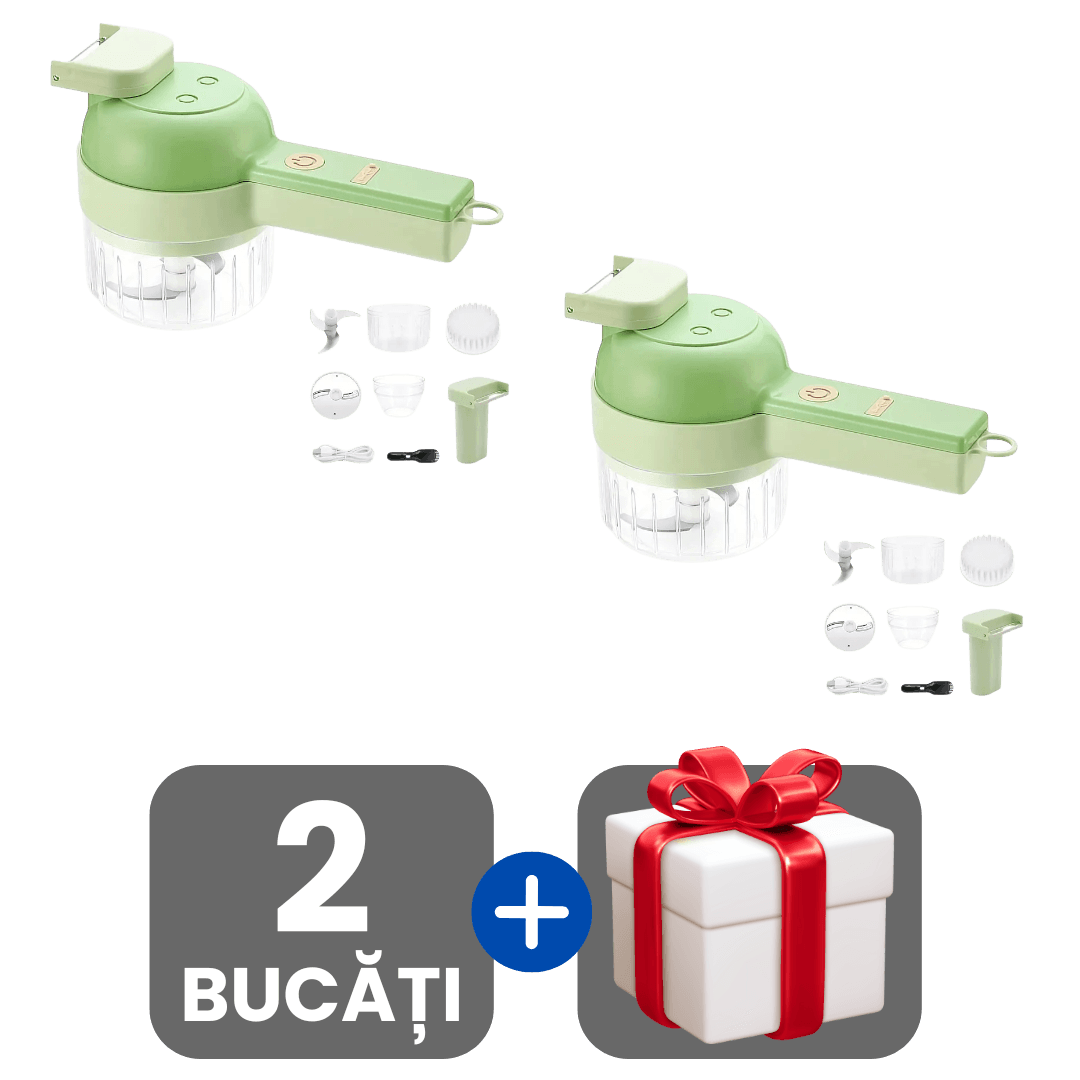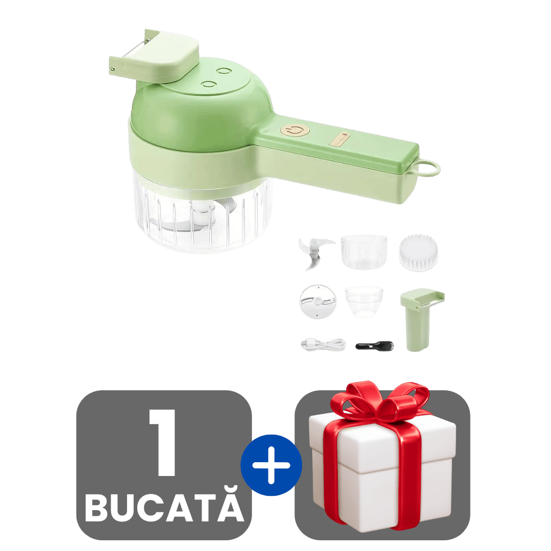 Tocător de Mână Electric 4-în-1 cu Lame din Oțel pentru Legume și Fructe + Cadou surpriză 🎁